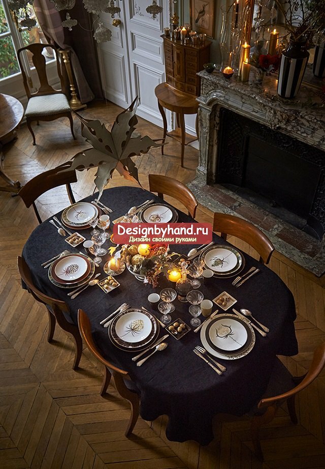 Если вы хочется создать необычное праздничное оформление, современно, элегантно и достойно будет выглядеть черная скатерть в комплекте с белой посудой, елка, наряженная в черные игрушки, желательно с матовым оттенком и, завернутые в белую с золотом бумагу, подарки.