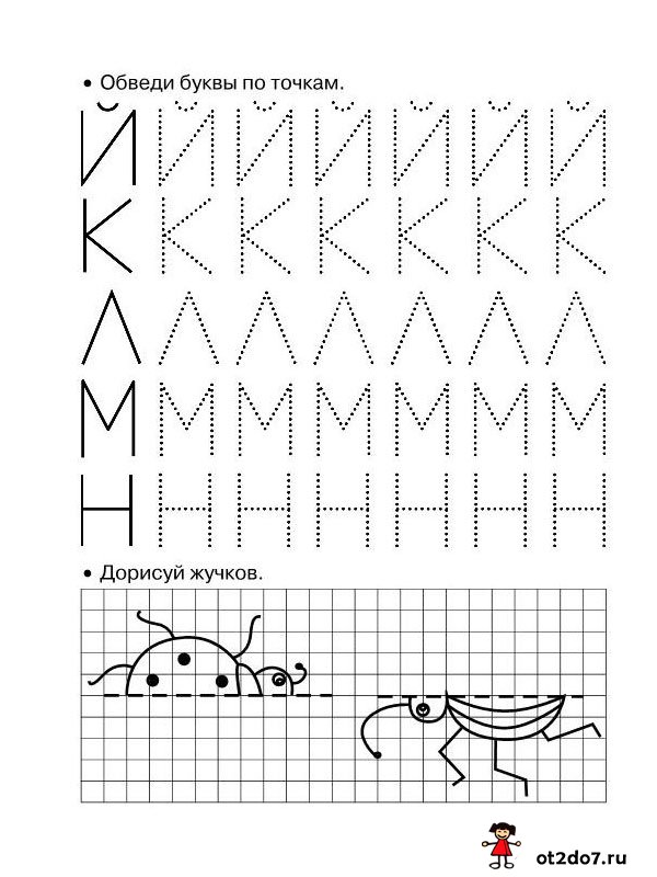 Учимся с ребенком писать печатные буквы по точкам. Буквы уже написаны пунктирной линией, нужно аккуратно из обвести